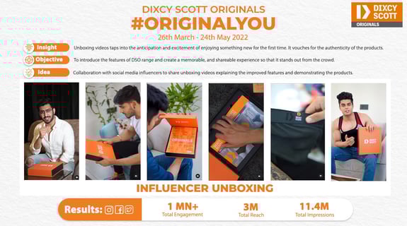 Dixcy Scott wanted to get away from the Salman Khan image that it had created over the years. We worked on a digital strategy for the brand, and executed many UGC, Influencer and Social Media campaigns (shown ahead) to change the brand perception in the market and make it a Gen-Z and Millenial friendly brand.