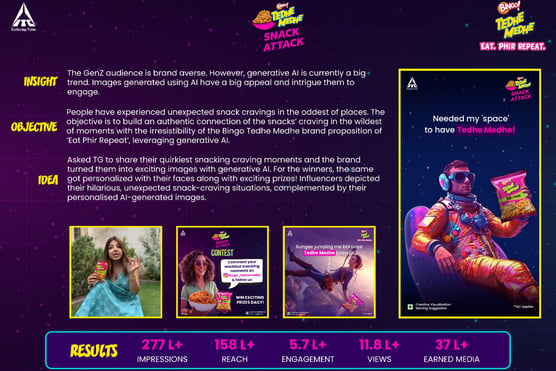 While taking a snack break with one of my copywriters (also known as procrastination), I had this idea to use AI to showcase all the different scenarios when one might need a snack. Thus, this award winning was conceptualized and approved within the same week.